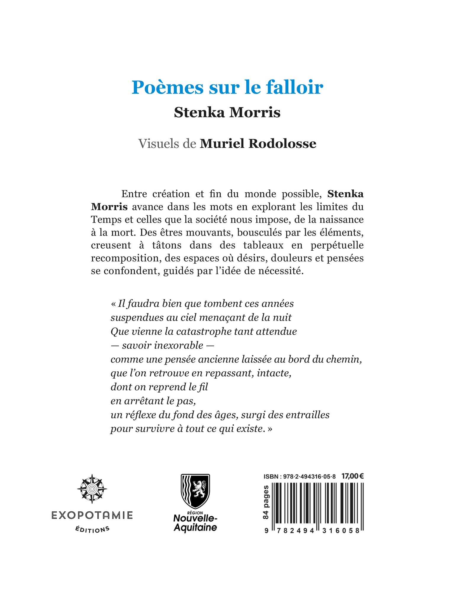 Entre création et fin du monde possible, Stenka Morris avance dans les mots en explorant les limites du Temps et celles que la société nous impose, de la naissance à la mort. Des êtres mouvants, bousculés par les éléments, creusent à tâtons dans des tableaux en perpétuelle recomposition, des espaces où désirs, douleurs et pensées se confondent, guidés par l’idée nécessité.